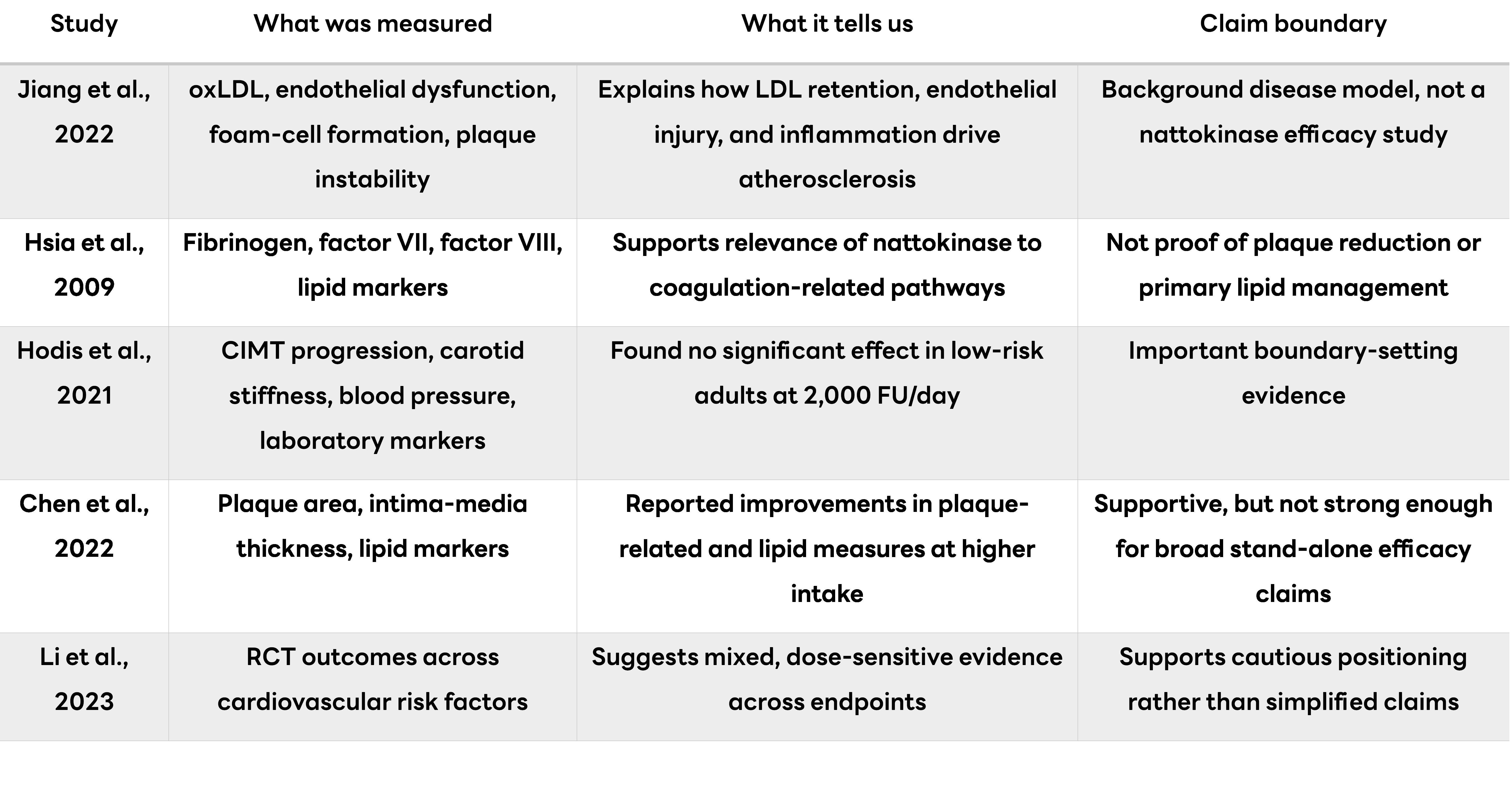 A: That is too strong a conclusion. The evidence can support scientific relevance in atherosclerosis-related discussions, but not a broad stand-alone claim that nattokinase reverses plaque.